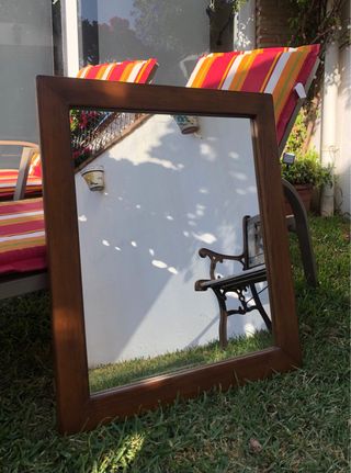 Precioso espejo antiguo con marco de madera y cristal. - Marco de madera rústica. - Cristal de espejo. - Diseño clásico y elegante.