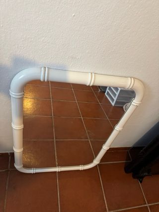 Elegante espejo con un marco de madera en forma de bambú. - Diseño único. - Acabado en blanco.