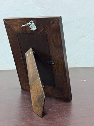 Portafotos de madera con un diseño elegante y un acabado rústico. Perfecto para exhibir tus recuerdos más preciados. - Marco con detalles de costura decorativa. - Apto para fotos de 10x15cm.