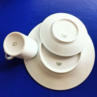 Precioso juego de desayuno, Incluye: Taza, plato para taza y plato postre, con un delicado diseño de flores violetas. - Fabricado en porcelana. - Motivo floral en tonos morados y verdes.