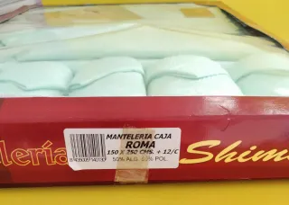 Elegante mantelería de la marca Shima. 150x250 cm. 12 servilletas. - Diseño con motivos florales y geométricos. - Incluye mantel y servilletas.