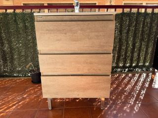 Armario de tres puertas con un diseño sencillo y funcional. - Acabado en madera clara. - Tres puertas de apertura. - Tiradores metálicos.
