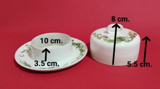 Elegante mantequillera de porcelana con un delicado diseño floral. Presenta un minimo toque que se muestra en fotos. - Base y tapa a juego. - Adorno de rosas en tonos rosas y blancos. - Borde dorado.