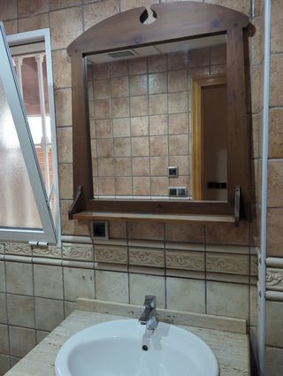 Mueble de baño con espejo y estantes interiores. Ideal para organizar tus productos de aseo. - 2 muebles de unos 40x60x20 a 15€ unid. - 2 muebles de unos 60x60x20 a 25€ unid. - Acabado en madera clara. - Puertas con bisagras. - Estantes ajustables.