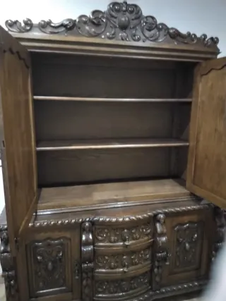 Mueble de salón de madera maciza, estilo clasico, con puertas, cajones, estantes y vitrina, gran capacidad de almacenamiento, mide 4,40 m de ancho y 2,05 m de alto la estructura aunque los paneles del fondo llegan a 2,50 m. En perfectas condiciones. Desmontaje y transporte a cargo del comprador. Precio negociable.