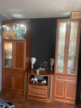 Precioso mueble de salón de madera maciza, estilo clásico. Ideal para darle un toque elegante a tu hogar. - Amplio espacio de almacenaje con estantes, armarios y cajones. - Vitrina con puertas de cristal para exhibir tus objetos decorativos. - Estructura robusta y bien conservada. Precio a negociar pero económico será fácil llegar a un acuerdo estoy pidiendo 300 €
