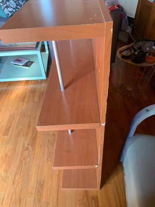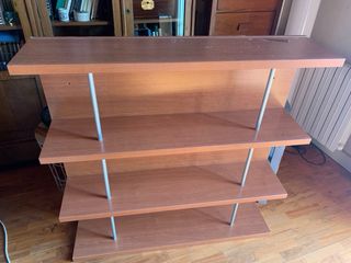 estantería de 4 pisos de madera de cerezo y barras de acero inoxidable. pesa mucho así que no la puedo enviar.. cualquier duda que tengas o si necesitas más fotos del producto escríbeme.🤙