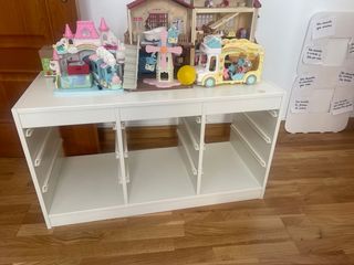 Estantería Trofast en color blanco, ideal para organizar juguetes y otros objetos. - Estructura de madera. - Múltiples compartimentos para almacenamiento. Tan solo tiene una pequeña Marquita que está tapada con una pegatina y que aparece en la foto. A recoger en nuestro domicilio.