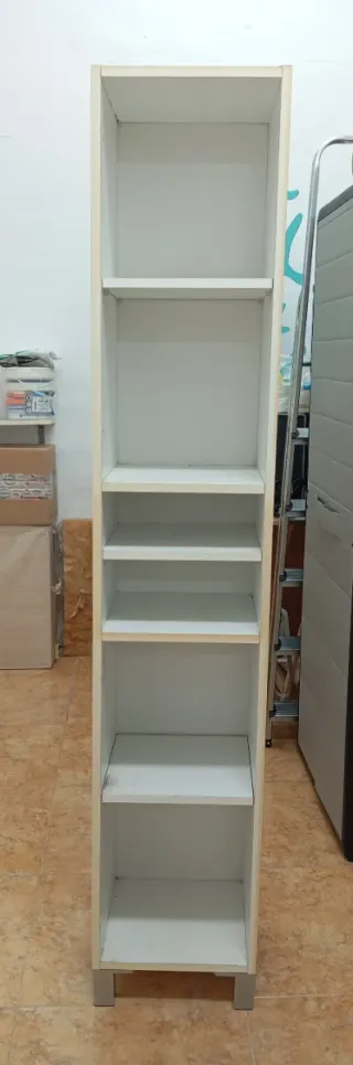 Para recoger va perfecto, es en un bajos a pie de calle, en la entrada de Castellar del Vallès, Barcelona Estantería de metal de cinco baldas graduables, aguantan bastante peso - Color blanco. - Estructura robusta. * Muy bien conservada excepto que tiene golpeado como se ve en la foto marcada, de ahí el precio pues a unas malas podrías dejar 4 baldas o incluso dejar esa parte para atrás pra que no se vea