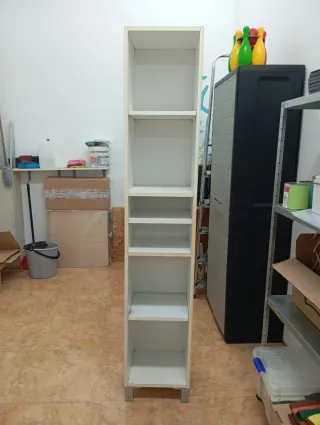 Estantería alta y estrecha, ideal para aprovechar el espacio. - Diseño moderno y minimalista. - Acabado liso y fácil de limpiar.