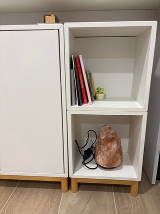 Se venden dos cubos de estantería Eket en color blanco. Vendo dos cubos con las patas. Si te interesa el mueble eket de al lado con puertas tipo armario, te lo vendo también por más importe. - Medidas: 25 cm (ancho) x 35 cm (alto) x 35 cm (profundidad). - Materiales: madera.