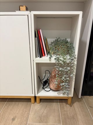 Mueble de almacenaje Eket de Ikea con un diseño moderno y funcional. - Medidas: 70 cm de alto x 25 cm de profundo. (Con las patas es más alto). - Vendo el resto del mueble (última foto) con cubos y sus patas por más importe. Pregúntame y lo hablamos. - valorado en 150€. - Acabado en color blanco. - Fabricado en madera.
