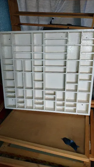 Estantería de madera con múltiples compartimentos, ideal para organizar y exhibir miniaturas o colecciones pequeñas. Su diseño permite una visualización clara de cada pieza. - Fabricada en madera. - Acabado en color blanco. - Múltiples divisiones y estantes.