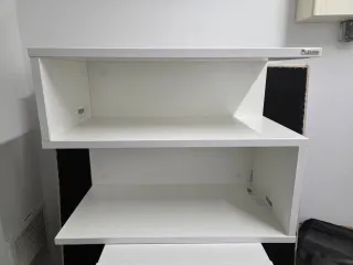 Mueble estantería blanca con cajones Mueble estantería de color blanco con dos compartimentos abiertos superiores y dos cajones inferiores amplios, ideales para almacenaje. Diseño moderno y funcional, perfecto para salón, dormitorio, estudio o baño. Se ha usado poco, en muy buen estado general. 📍 Recogida en mano 💶 Precio negociable