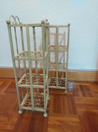 Dos estanterías pequeñas de hierro pintadas en beige envejecido