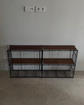 Más información en nuestra web. Organizamos envíos Estantería modular de estilo Avalon totalmente restaurada 4 módulos independientes. de pueden vender por separado. pregunta precios. El precio es por unidad puedes hacer la combinación que quieras Precio balda 100 Precio por cada barra de hierro structura 150 Cada módulo grande 250 Así puedes calcular el precio. - Estructura de metal negro. - Muebles de madera de teca. - Múltiples compartimentos de almacenamiento.