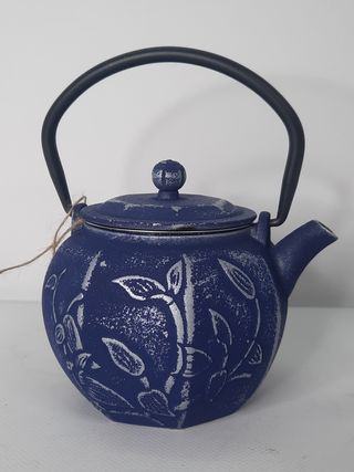 bonita tetera de hierro azul,nueva a estrenar,con su filtro y tapa,interior esmaltado,muy decorativa 14x14 cm Consulta otros artículos en mi perfil. Instagram:@nildebearn. No leer: Mueble artesano vintage a mano carpinteria artesanal estilo antiguo vitrina estanteria rustico libros madera maciza steampunk diseño vitrina antigua restaurar restaurado antiguedades muebles vitrinas Chalk paint decapado decoracion