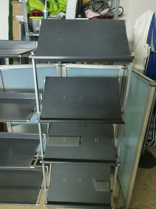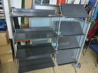 Expositor estructura hierro con bandejas de diferentes formato metálicas El expositor es nuevo de exposición patas regulables 138 de largo x 36 de profundo x 165 de alto