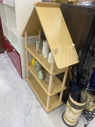 Estantería de madera con un diseño original en forma de casa. Ideal para colocar objetos decorativos o libros. - Material: Madera. - Color: Marrón y amarillo. -Hacemos envíos a domicilio a (Madrid y alrededores) -El plazo de entrega es de 1 a 3 días laboráles -Tenemos tienda física -Dirección: Carretera de ajalvir a daganzo km 1,7 28864 Ajalvir Nave ONGD Remar -TLFN: 667 939 037 (Whatsapp) -El pago se realiza en el momento de la entrega en (efectivo)