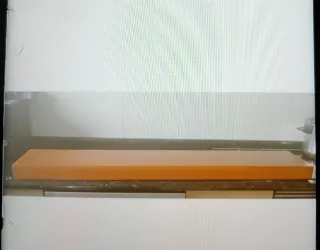 Estantería de madera con un acabado en tonos naranjas y marrones. - Diseño alargado y estilizado. - Ideal para colocar objetos decorativos o libros. 130 largo 26 ancho 6 alto Precio negociable