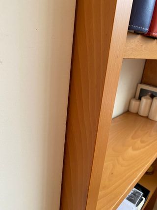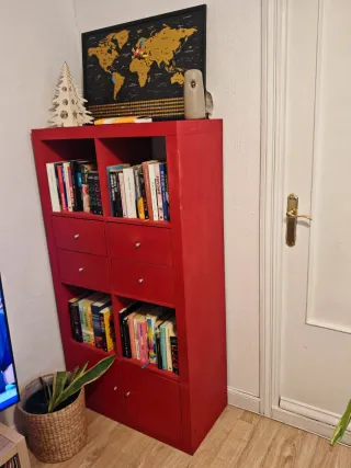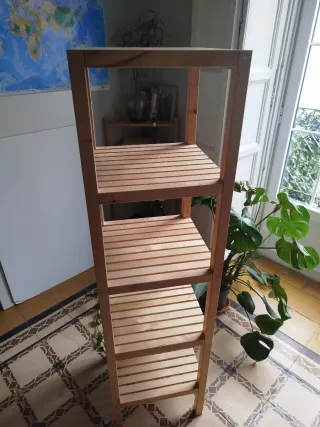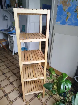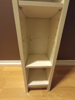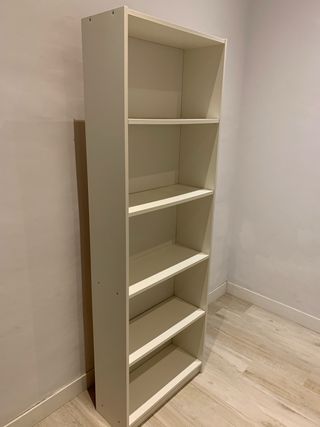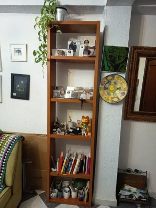 Estantería alta y estrecha, perfecta para organizar libros y objetos. - Diseño moderno y funcional. - Amplio espacio de almacenamiento. En buen estado. Tiene dos pequeños desperfectos según las últimas fotos (en el lateral, un arañazo, y en el inferior de una de las baldas un trozo agrietado).