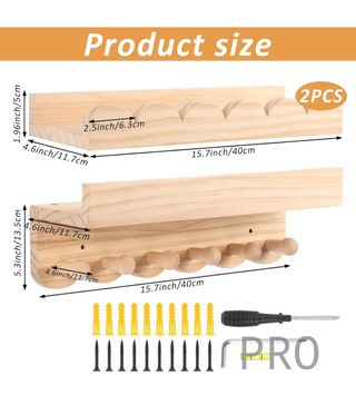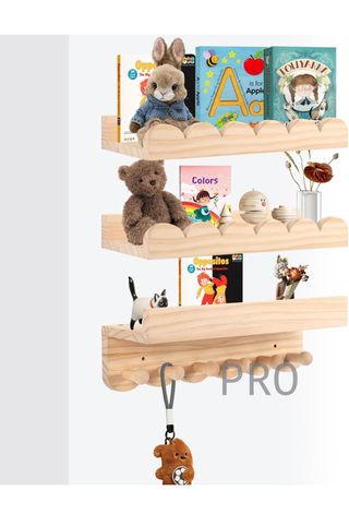 Rainmae Estantería para niños, juego de 3 unidades, 40 cm, para habitación infantil, con ganchos de madera, ideal para libros y juguetes, 100% madera