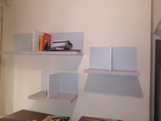 Estantería con diseño en forma de escalera. - Diseño moderno y funcional. - Ideal para organizar libros y objetos decorativos. Se puede vender montada o desmontada