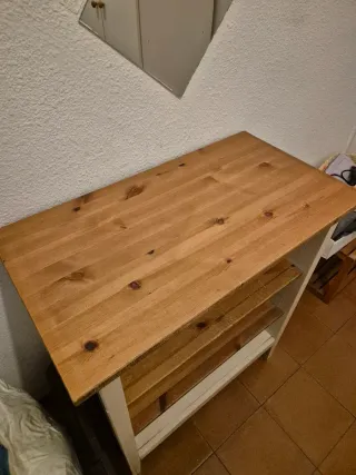 Estantería de dos niveles, ideal para colocar plantas o libros. Su diseño es ligero y funcional. - Está en la caja de Ikea, hay que montar. - Medidas detalladas corresponde a la caja. - Estructura de madera. - Acabado en color blanco.