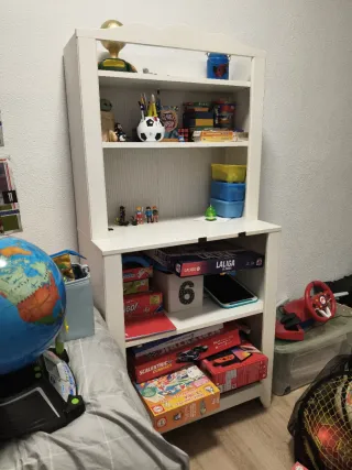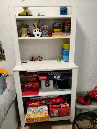 Estantería blanca con varios compartimentos, ideal para organizar juguetes y libros. - Diseño moderno y funcional. - Estructura robusta.