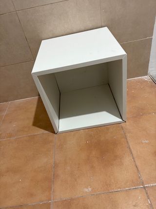 Estantería cúbica de madera en color blanco. - Diseño moderno y minimalista. - Ideal para organizar libros o elementos decorativos.