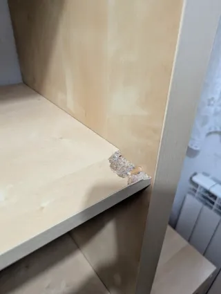 Estantería alta y estrecha, perfecta para almacenar CDs, DVDs o libros. - Diseño vertical y delgado. - Múltiples baldas para organización. - Medidas en las últimas fotos. - Con signos de uso y un roto que se muestra en la segunda foto, el cual no afecta a su funcionalidad.