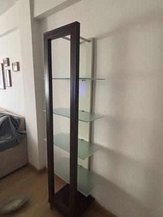 Estantería de cristal y madera