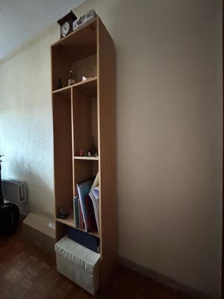Estanteria de dormirorio morada y color haya en muy buen estado. medidas 209 alto 98 ancho 40 fondo en la base las baldas tienen 30 de fondo. permite gran almacenaje de libros Se desmonta facil