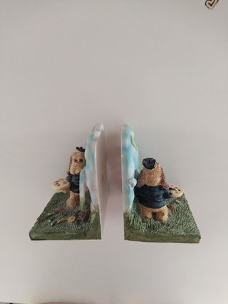 Preciosos sujeta libros de resina con forma de osos pintando, ideales para decorar una estantería. Se encuentran en perfecto estado. - Hechos de resina. - Diseño encantador.