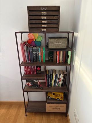 Estantería de madera y metal