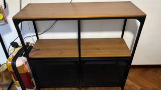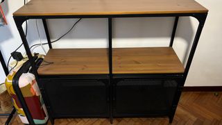 Hola! Vendo la estantería FJÄLLBO porque nos mudamos y no nos cabe en el piso nuevo. Está súper bien cuidada, es la que combina metal negro y madera de pino maciza (no es el típico aglomerado, es bastante robusta). Como se ve en las fotos, tiene un par de marcas minúsculas en el borde de la madera de usarla, pero ni se notan si no vas a buscarlas. Las puertas de rejilla van perfectas y cierran bien. Nueva en Ikea cuesta 100€ y te ahorras tener que montarla, que tiene su aquel. A recoger en la zona de O Temple (Cambre). Es un ático con ascensor. ¡Cualquier duda me decís!