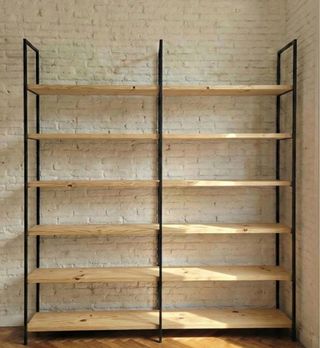Estantería de estilo industrial con un diseño moderno y funcional. Madera de Pino y Hierro, acabados personalizados. El precio esen la medida 220cm de alto x 20cm defondo x 200cm de ancho, se puede realizaren la medida que desees. - Combinación de madera y metal. - Estructura robusta y duradera. - Ideal para organizar libros y objetos decorativos.