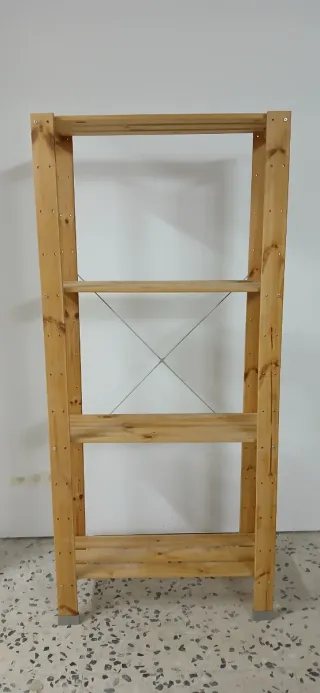 Estantería de madera de pino macizo con un diseño clásico y funcional. Segundo piso sin ascensor - Estructura robusta de madera. - Cuatro baldas amplias para almacenamiento. - No es de Ikea