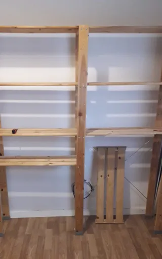 Tengo 7 módulos 25€ cada modulo Esta estanteria ya no se vende en Ikea La de Ikea hace 31 cm de fondo y estas hacen 45cm Es un modelo descatalogado Estantería de madera de la serie HEJNE de IKEA. Su diseño sencillo y robusto la hace ideal para cualquier espacio. - Estructura de madera de pino. - Múltiples baldas para almacenamiento. - Refuerzos metálicos en forma de X para mayor estabilidad.