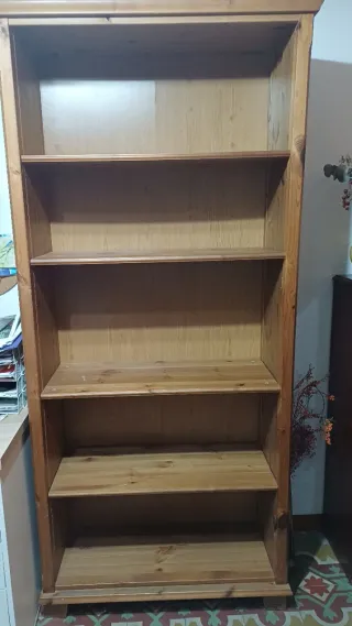 Elegante librería de pino macizo, perfecta para organizar tus libros y objetos decorativos. - Fabricada en madera de pino de calidad. - Diseño robusto y duradero. -Baldas regulables fácilmente usando una simple llave Allen. Pertenecía o era parte de una librería modular de Ikea ya descatalogada. La he desmontado para transportarla muy fácilmente.