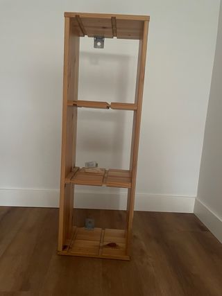 Estantería de madera de pino. - Estructura de madera maciza. - Tres módulos, se pueden colocar tanto horizontal como vertical como en escalera. Muy versátil. De gran calidad y en perfecto estado. (No incluyen las cestas ni resto de cosas)