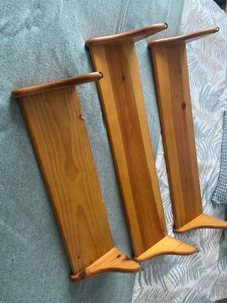 Estante de madera de pino maciza, ideal para cualquier espacio. - Diseño sencillo y elegante. - Acabado natural. Dispongo de dos baldas iguales. Precio por unidad: 10 euros. Recoger en domicilio.