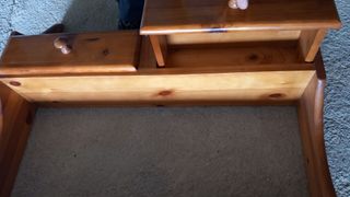2 rinconeras de madera. Una solo 9 euros.Si te llevas las dos 17€ . las medidas altura y ancho están en las fotos.