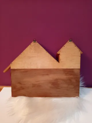 Casita expositora de madera con varios compartimentos. - Diseño en forma de casa. - Ideal para exhibir pequeños objetos.( Dedales, miniaturas..) - se puede pintar y/ o barnizar al gusto.