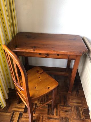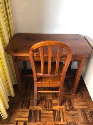 Conjunto de escritorio y silla de madera. - Escritorio con un cajón. - Silla - Estantería Se vende también por separado