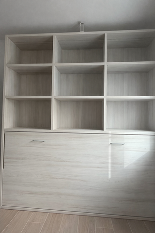Cama abatible con estantería (215cmx245cm) + colchón 90 cm y almohada Vendo cama abatible individual con estantería integrada en color madera clara. Es perfecta para aprovechar el espacio en habitaciones pequeñas, despacho o cuarto de invitados. La estructura tiene varias estanterías amplias para libros, decoración o almacenamiento, y la cama abatible se abre fácilmente. Cuando está cerrada queda todo recogido y ocupa muy poco espacio. Incluye también: ✔ Colchón de 90 cm ✔ Almohada Todo en muy buen estado. Ideal para: • habitación juvenil • cuarto de invitados • apartamento o estudio • despacho con cama ocasional