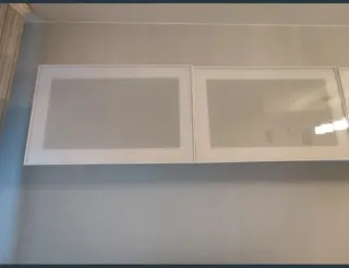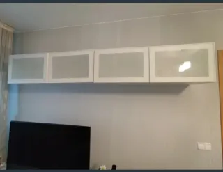 Estantería de pared con un diseño moderno y elegante. - Combinación de cristal y madera. - Acabado en blanco y transparente. Son dos módulos cada uno de 120 cm.