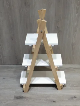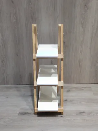 Estantería de madera con tres niveles, ideal para organizar tus objetos. - Diseño de tres baldas. - Madera natural y blanca. - Desmontable. - Medida baldas 30-40-50cm - Ancho balda 19cm.