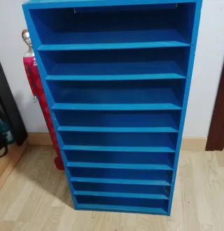 Mueble de madera archivador, con múltiples baldas para organizar tus objetos. Su diseño es moderno y funcional. - Medidas: 78 cm altura. 40 cm ancho y 40 de fondo. - Color azul vibrante. - Estructura de madera robusta