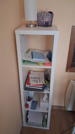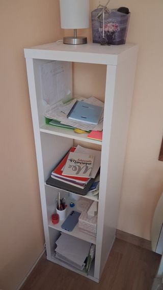 Mueble librería Kallax de 4 huecos con 4 cajones. - Estructura de madera. - Color blanco. Precio original, con cajones, 75 euros